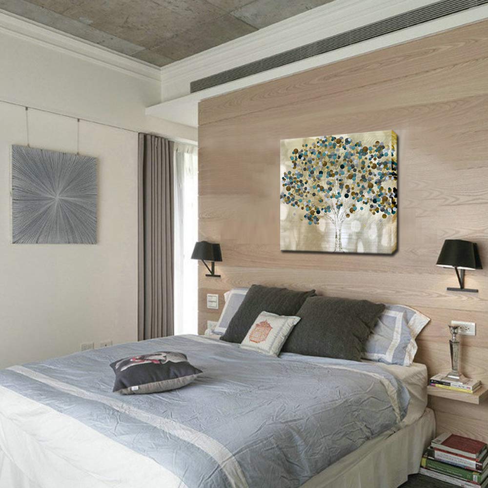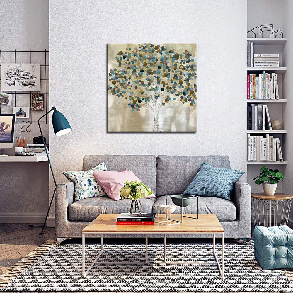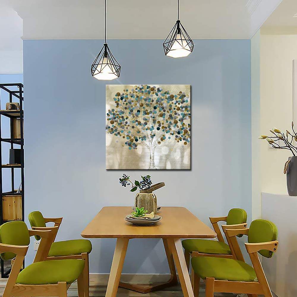 Briora Abstract Tree Canvas Wall Art in Gold and Blue, Modern Artwork Print for Living, Dining & Bedroom Décor, Ready to Hang 24x24 Inch