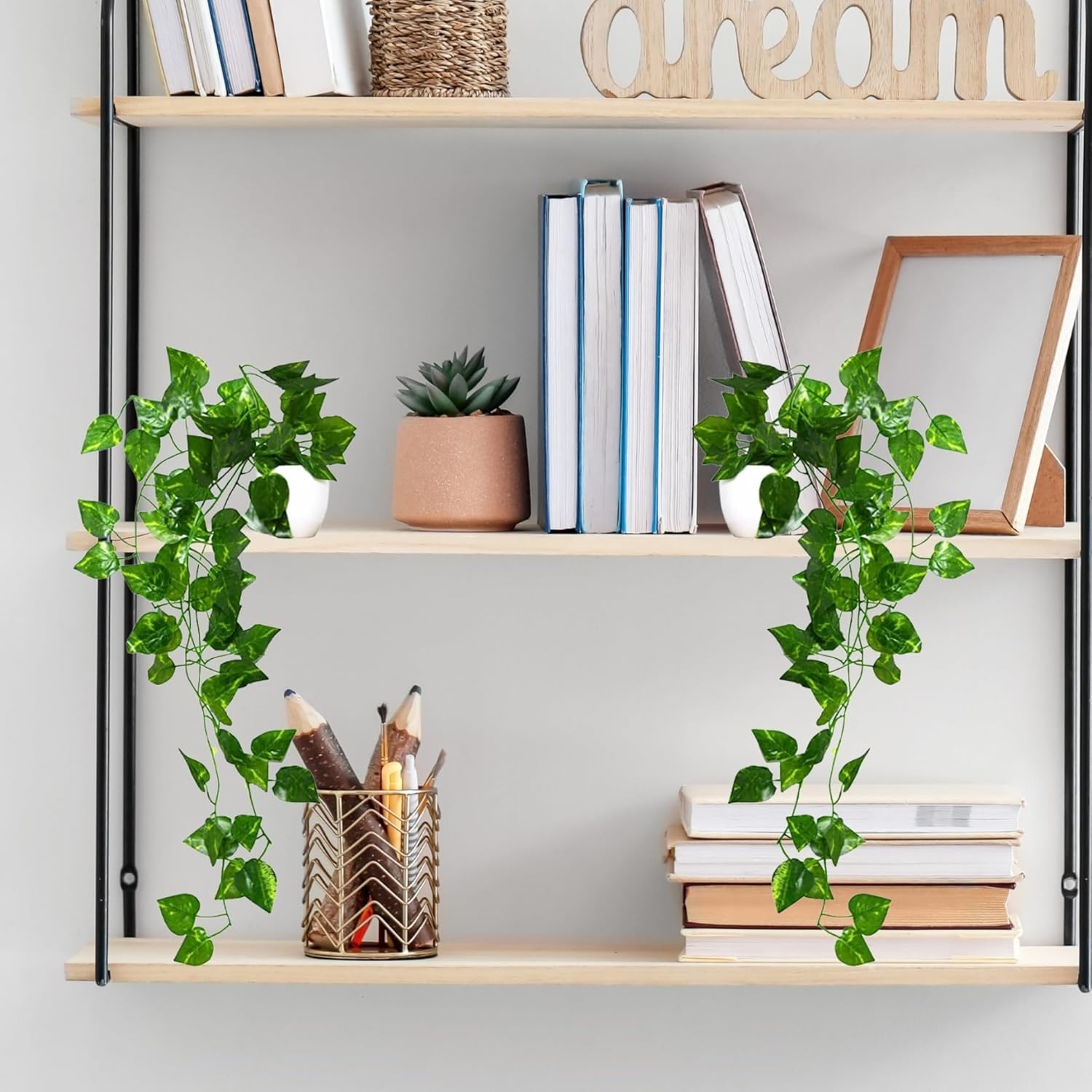 Frolica Plastic Artificial Vine Plants with Pots, Natural Touch & Feel, Pack of 2, 45 cm, Home & Office Décor