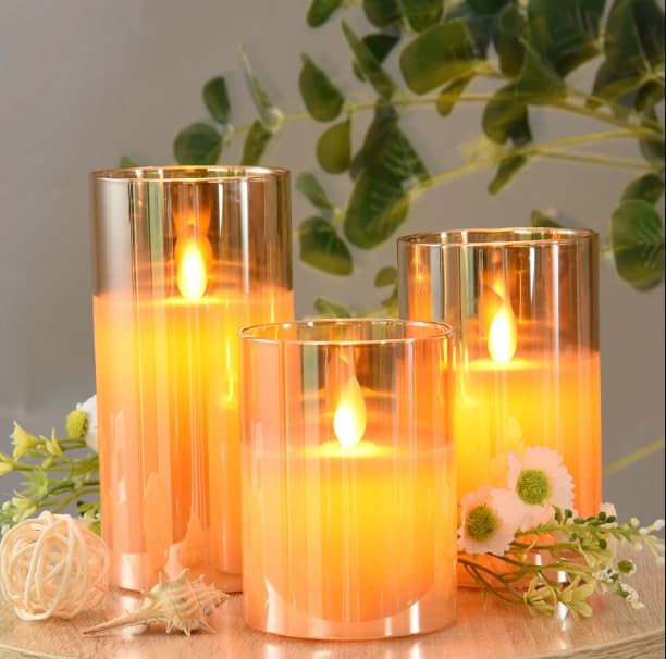 Elevate your home ambiance with the Lumora Real Wax LED Glass Flameless Candles, featuring a premium amber gold pillar design in a set of three. Crafted from authentic paraffin wax and encased in elegant glass shells, these battery-operated candles deliver a realistic flickering flame effect, mimicking natural candlelight without the risks of open flames. Powered by three AA batteries each, they provide over 200 hours of continuous use and a durable LED lifespan exceeding 50,000 hours. Ideal for festive occasions like Diwali and Christmas or everyday decor, these flameless candles combine safety, longevity, and sophisticated charm effortlessly.